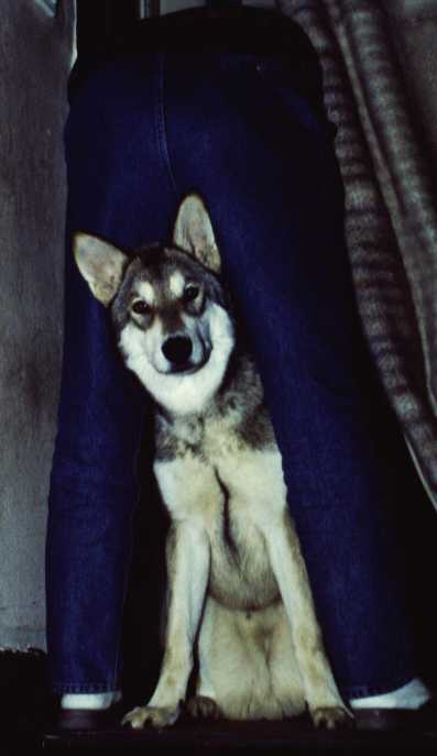 Mein erster Saarloos Wolfhund. Noch heute denke ich mit Staunen daran, was für ein harter Hund er war! Er kannte keine Schmerzen (lief über einen Kilometer mit aufgeschnittenem Fuß über einen frisch gepflügten Acker, ohne nur einen Schritt lahm zu gehen) war unglaublich selbständig und ein hervorragender Problemlöser. Und er war riesengroß, wunderschön (natürlich! war schließlich mein Hund!) und ziemlich gehorsam. Sein Tod kam aus heiterem Himmel mit 10 Monaten. Dieser Wurf stand wohl unter keinem guten Stern, denn von 5 Welpen leben nur noch 2... Aus einem klitzekleinen Welpen...